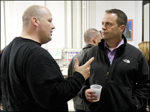 Lucas County Sheriff's Office, Patrick Mangold, left, and The Toledo Police Patrolman's Association Union President Dan Wagner, right, talk.