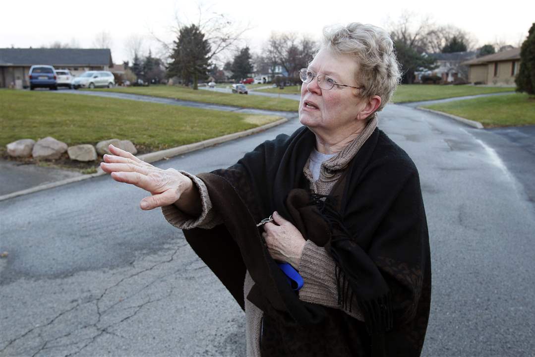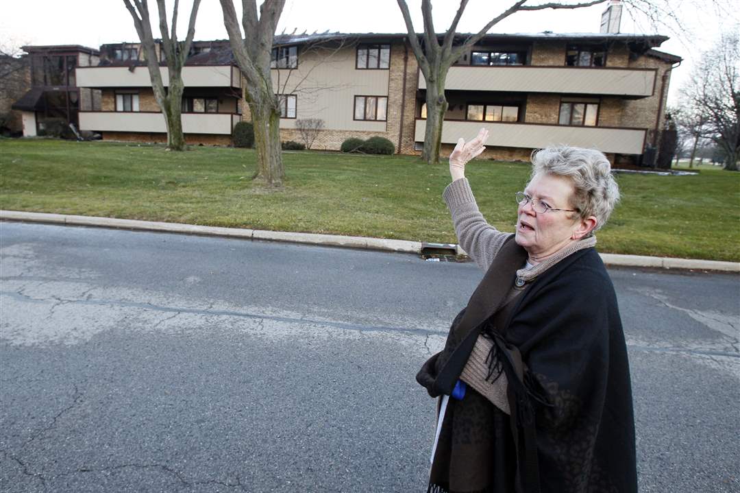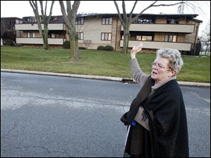 Kathy Connelly, 70, a resident of the Brandywine condominium complex on Byrnwyck West Road in Monclova Township, describes what happened when fire broke at the complex on Thursday evening.