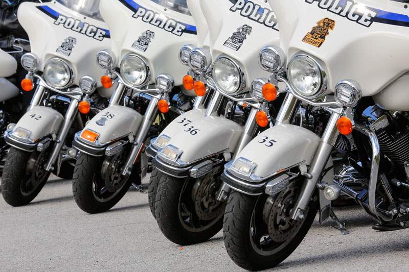 Sgt. Tyson Coates directs a member of the Toledo Police Department motorcycle unit.