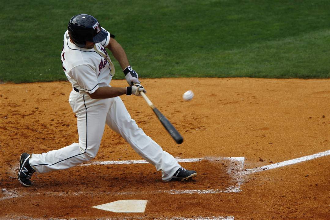 The Mud Hens' Mike Cervenak takes a swing but hits a foul ball.