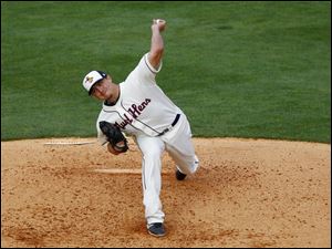 Toledo's Blaine Hardy delivers a pitch. He threw six scoreless innings to earn the win.