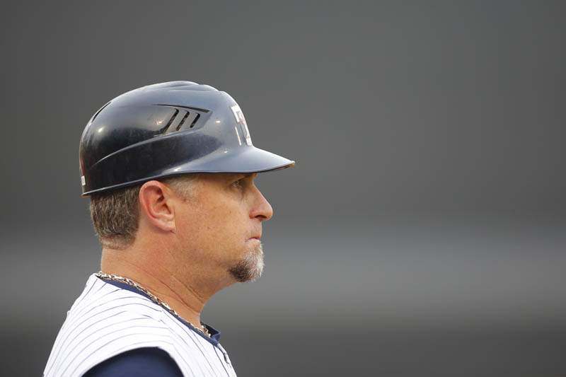 Toledo Mud Hens manager Phil Nevin coaches third base during the first inning.