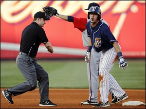Toledo's Hernan Perez reacts to being called out at second base in the fifth inning.