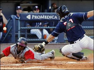 Mud Hens right fielder Danny Dorn scores in the sixth inning.