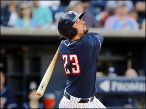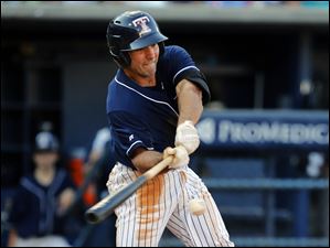 Mud Hens DH Mike Cervenak singles against Gwinnett during the sixth inning.
