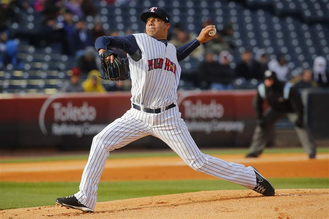 Toledo Mud Hens pitcher Jose Alvarez fires in a pitch in the second inning.