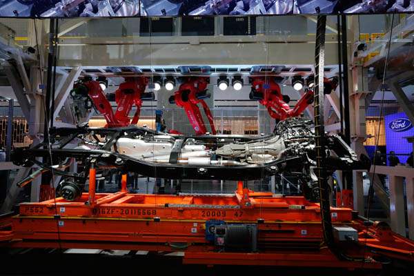 "Demo bay number 2" of the Ford Motor Company display shows the robots involved of the building of the 2015 F-150.