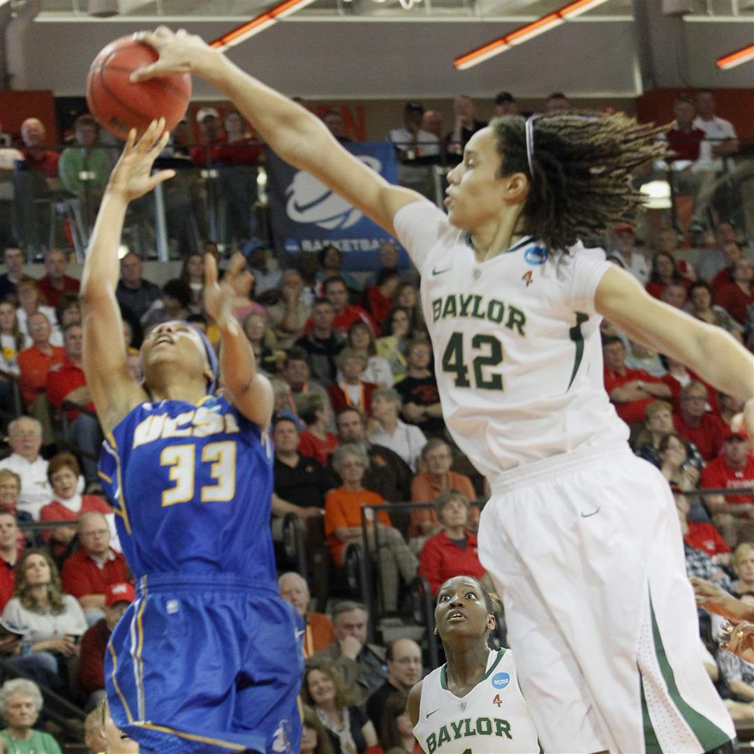 Baylor's Brittney Griner blocks the shot of UC Santa Barbara's Destini Mason. Griner had three blocks in the 21 minutes in which she played.