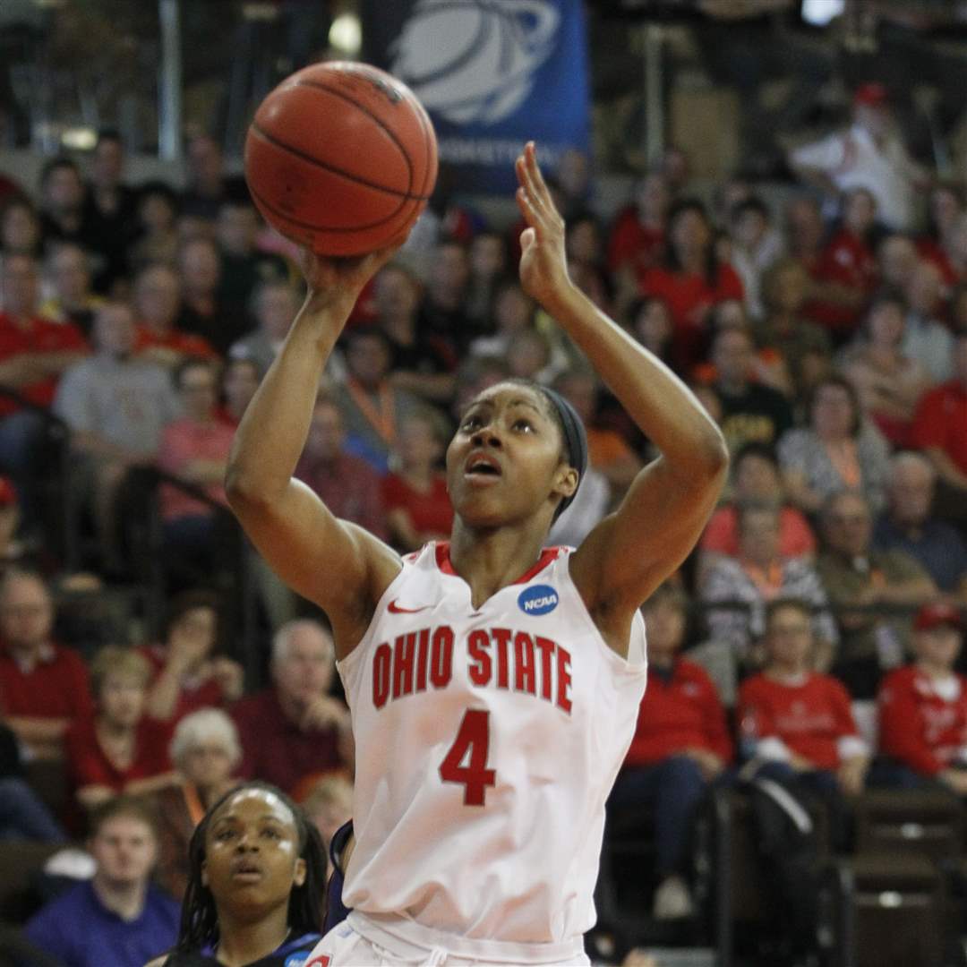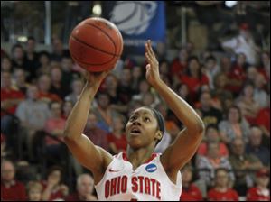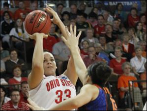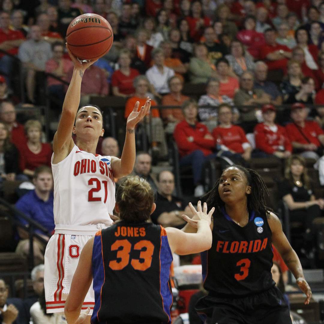 Ohio State's Ashley Adams shoots over Florida's Azania Stewert in the first half.