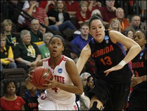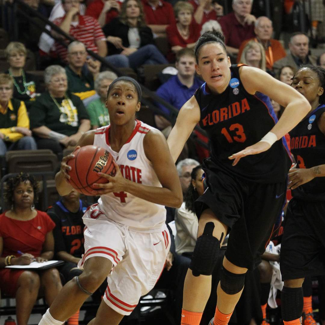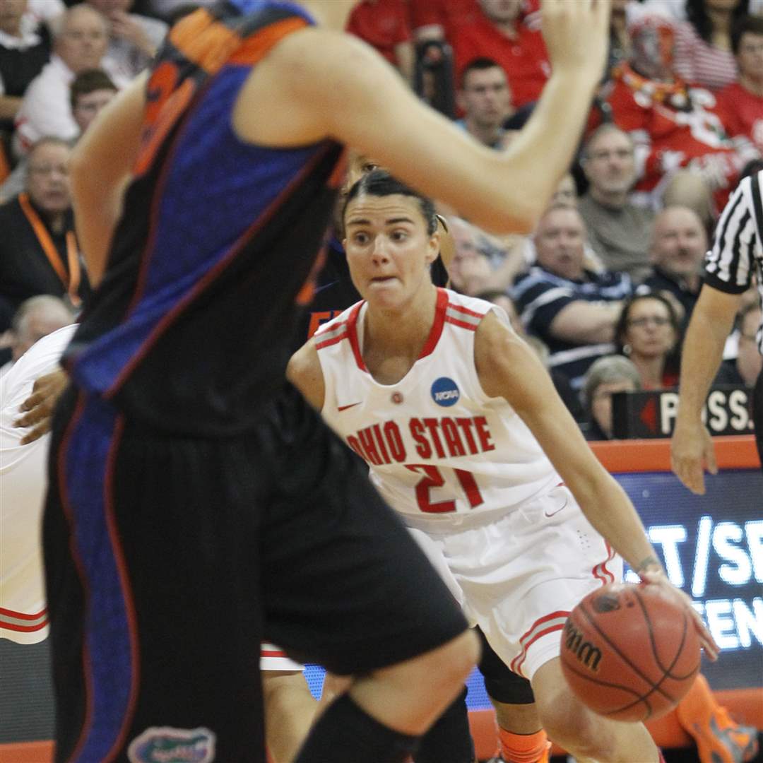 Ohio State's Samantha Prahalis drives toward the basket against Florida's defense.