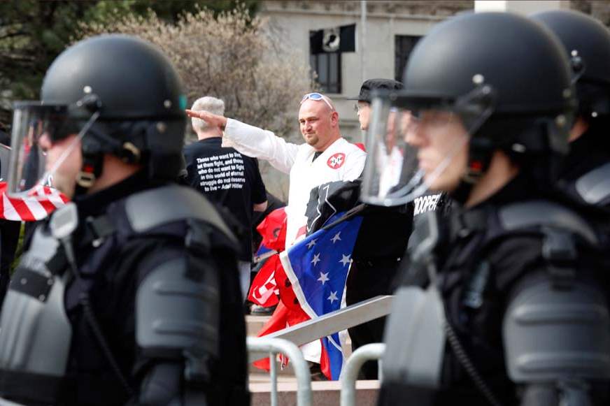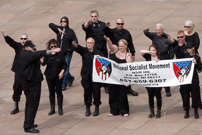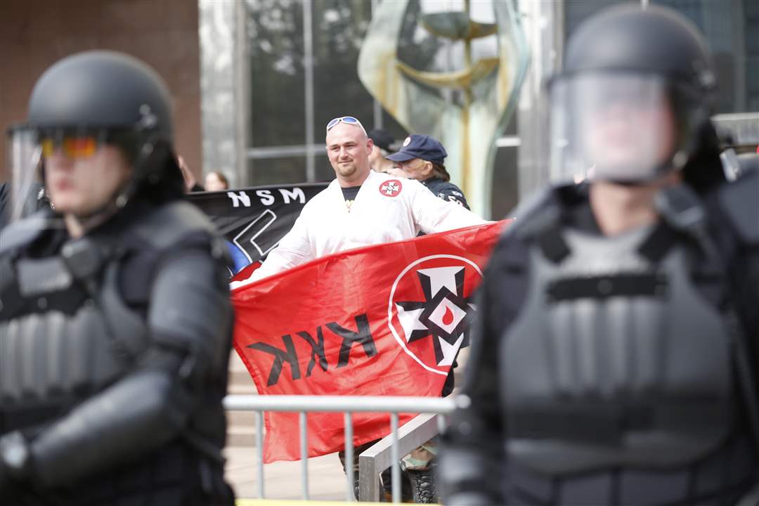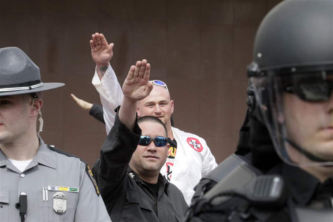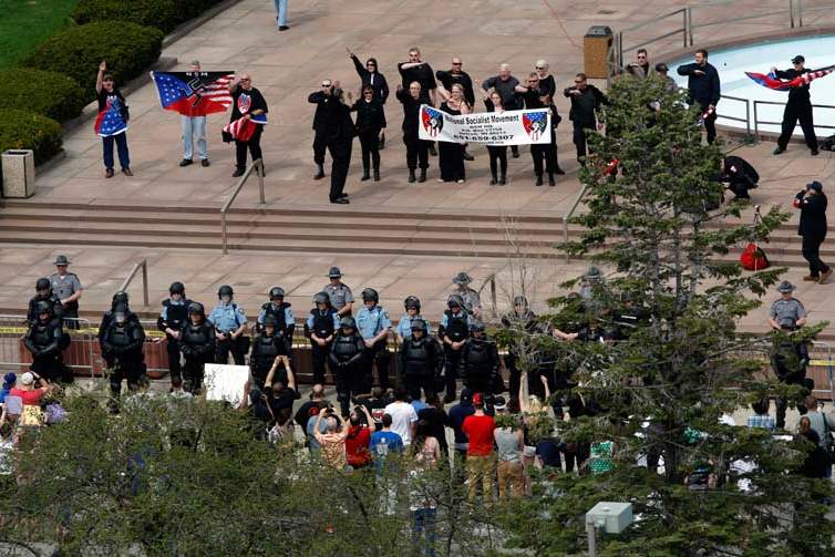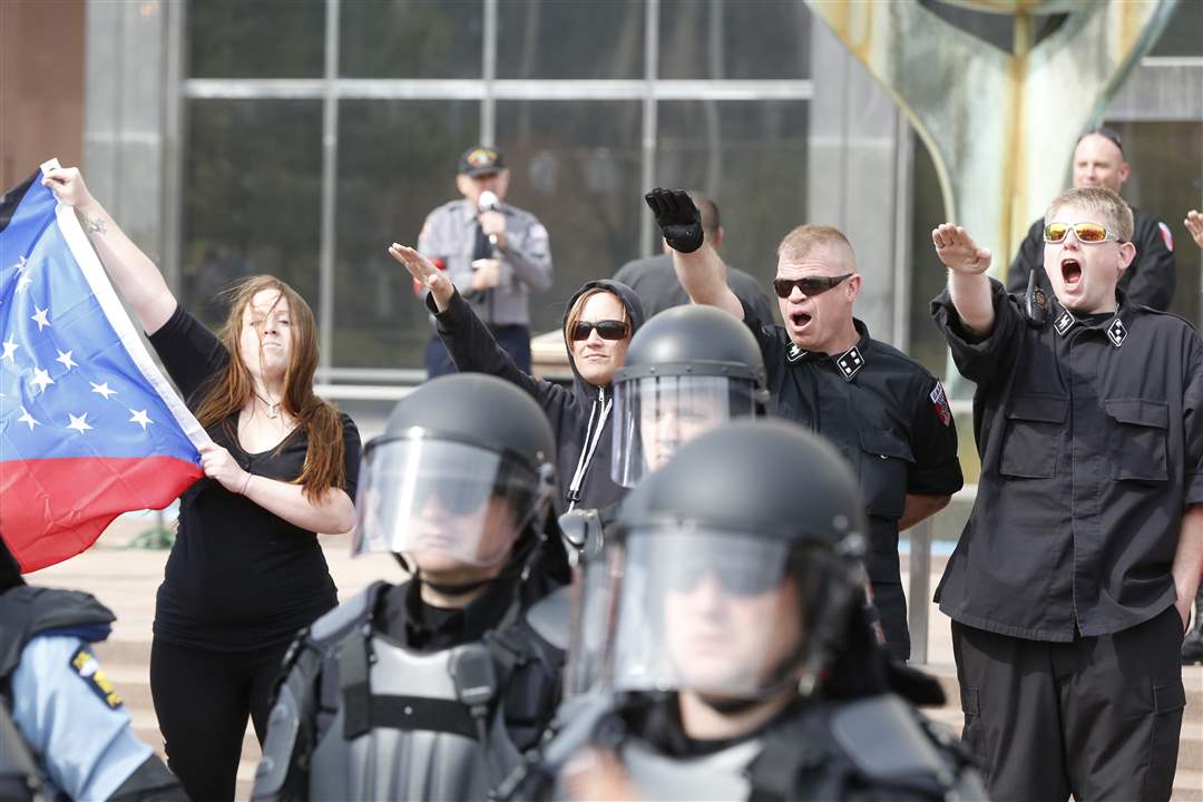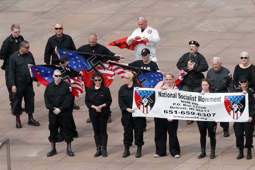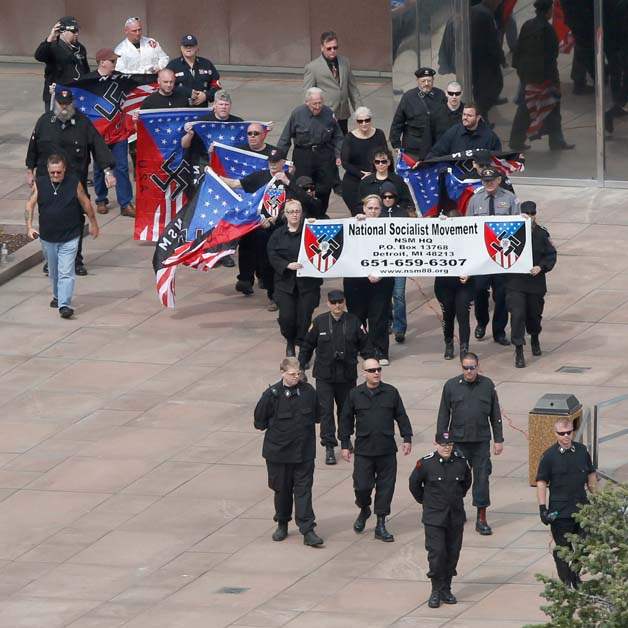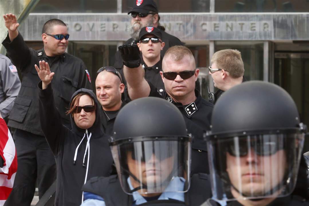 Members of the National Socialist Movement begin the rally at One Government Center.