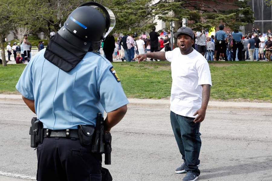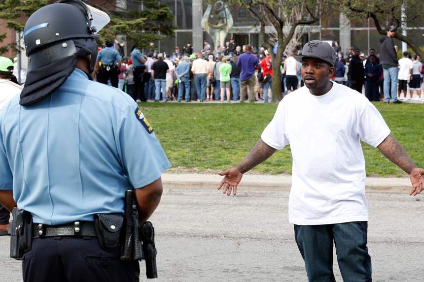 A Toledoan, who did not want to be identified, squares off with members of the Toledo Police Department.