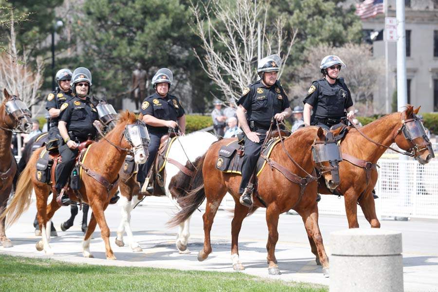 Members of the Lucas County Sheriff's Office's mounted patrol ride in front of One Government Center.