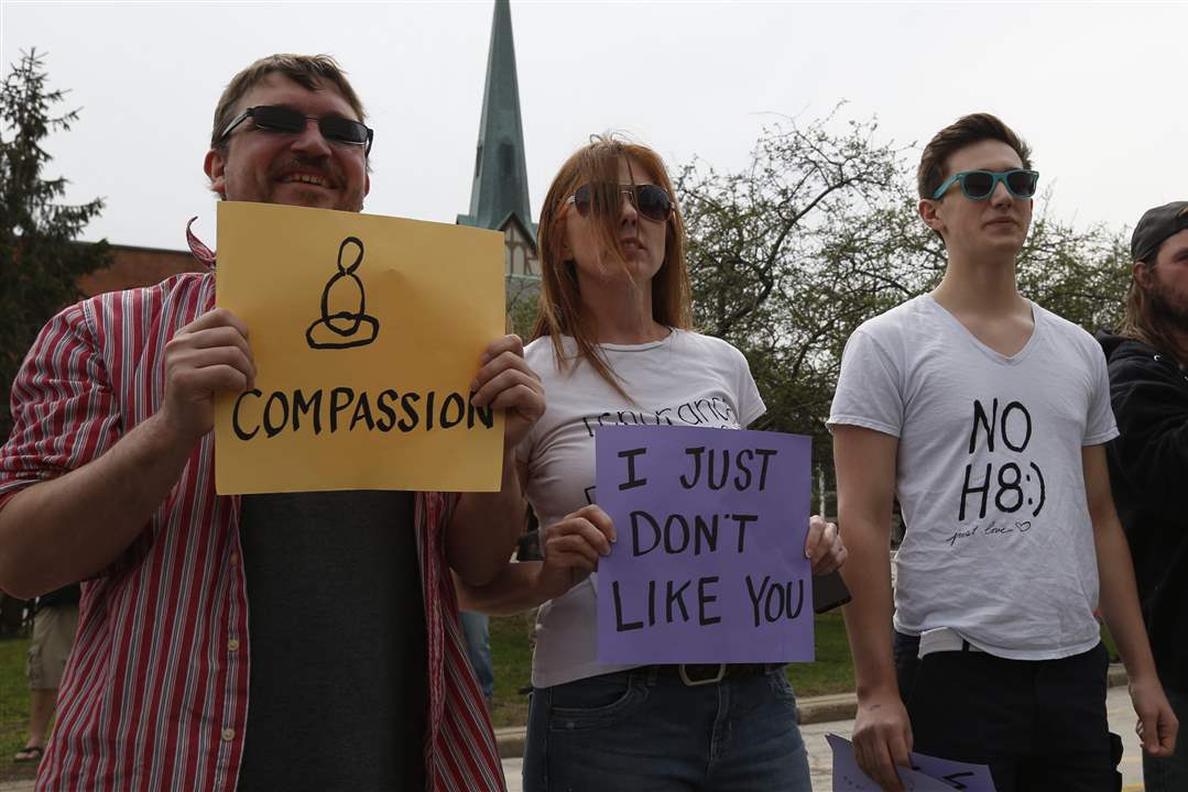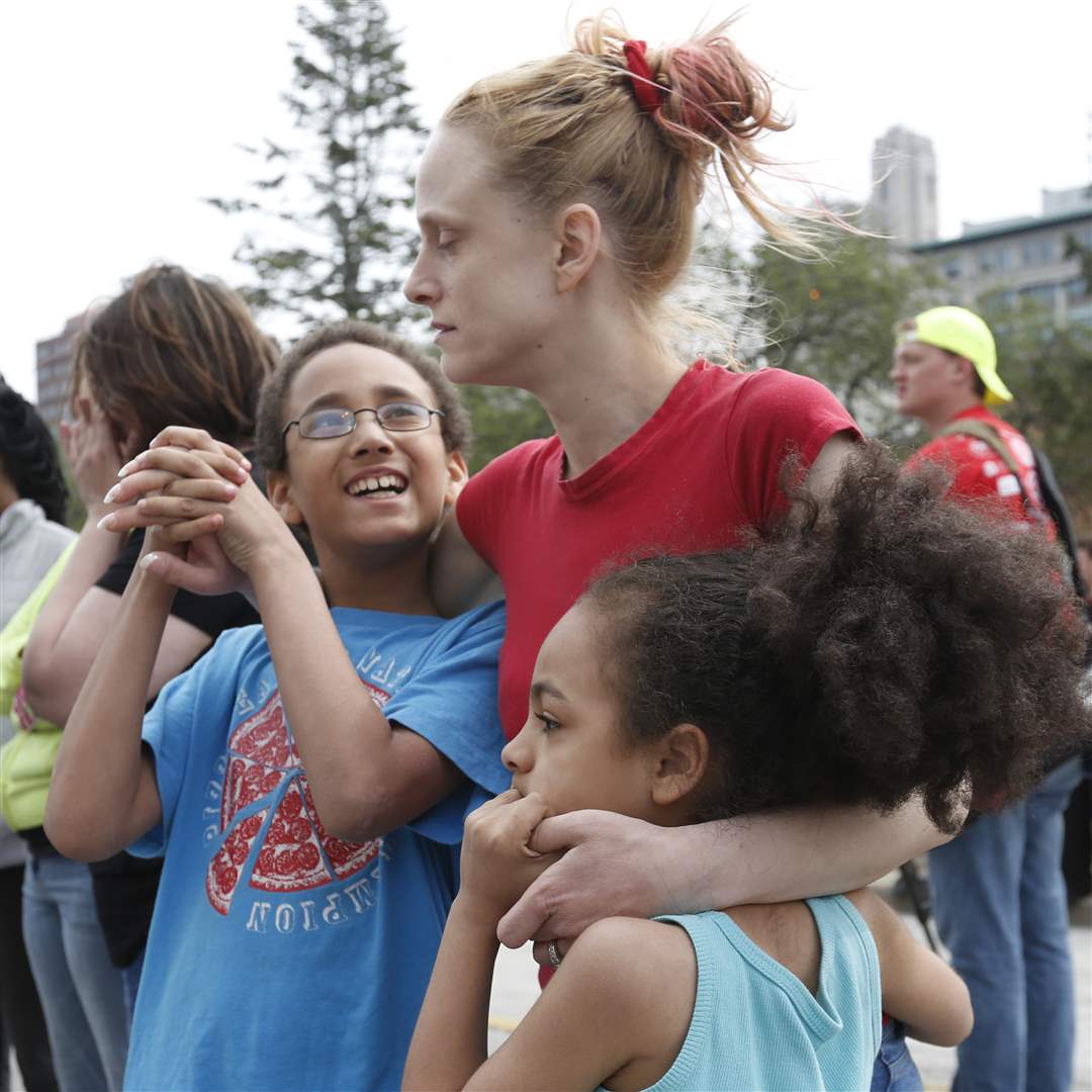 Melvin Newton, 9, with his mom Jennifer Newton and sister Chardae Newton, 8, all of Toledo. The mom says she brought her children so that they would learn that "people really do dislike other people."
