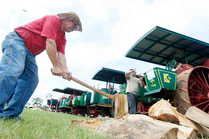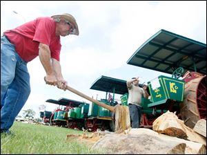 Joey Collins, from TN, chops wood for his steam engine during the National Threshers Association's 69th reunion that runs from June 27-30 at the Fulton Co. Fairgrounds.