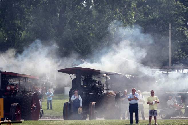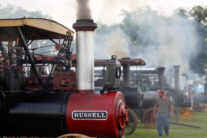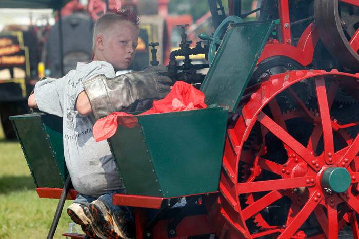 Ethan Brown, 10, from TN, tends to his steam engine.
