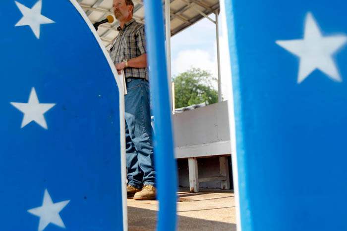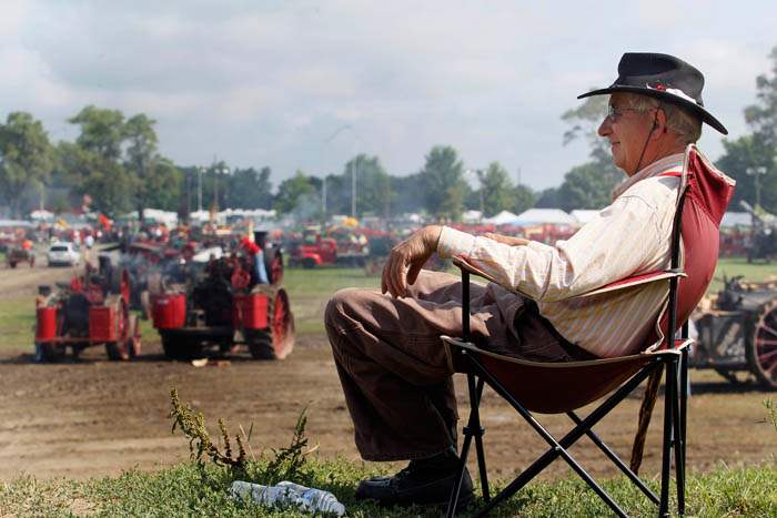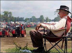 David Pence, from Bluffton, Indiana, sits on top of a hill to overlook all of the action.