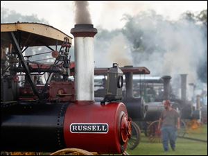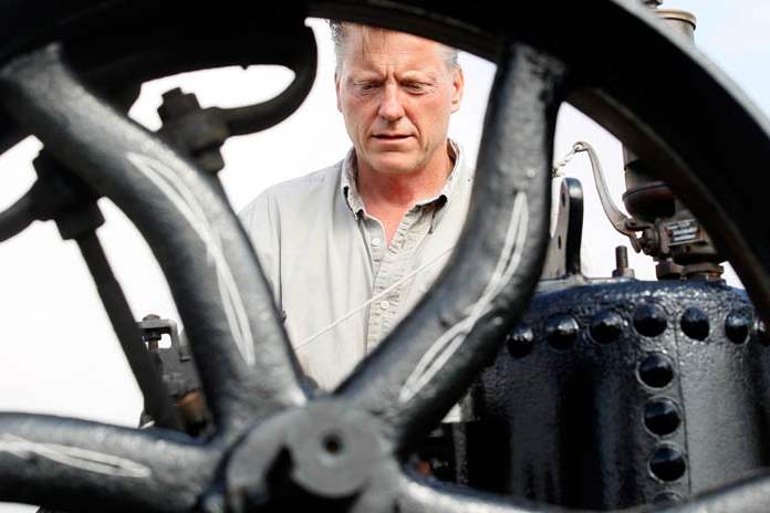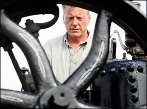 Philip Zuver, from Bryan, OH, works on his 1920 Port Huron Steam Traction Engine.