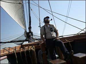 Edward Enborg, an Ensign of the U.S.S. De Wert, waits on board the U.S. Brig Niagara for its day-long sail to begin on Lake Erie during Navy Week on Saturday, Aug. 25, 2012.