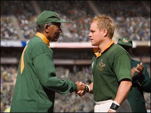 In this image released by Warner Bros., Morgan Freeman portrays Nelson Mandela, left, and Matt Damon portrays Francois Pienaar in a scene from the film, "Invictus." From the 1960s, when he was a political prisoner and South Africa was under the laws of apartheid, right up to recent times, when apartheid had fallen and he was among the worlds most admired people, Mandela inspired concerts, songs, poems, fiction and movies.