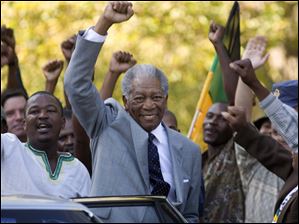 In this image released by Warner Bros., Morgan Freeman portrays Nelson Mandela in a scene from, "Invictus."