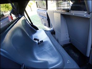 The back seat of the Toledo Police Department's a Ford Interceptor SUV.