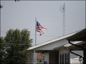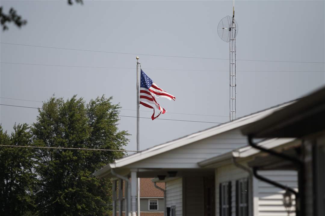 A damaged U.S. flag in Benton Ridge, Ohio. Hancock County, Ohio residents continue to clean up on Saturday.