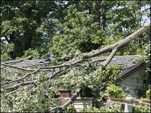 Two large branches fell on part of Rudy Ochoa's house. "I was coming down the steps [to the first floor] and I felt the second [tree] hit, said Ochoa, who said the impact reminded him of the limestone quarry nearby.