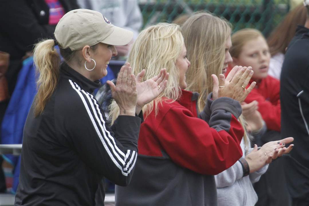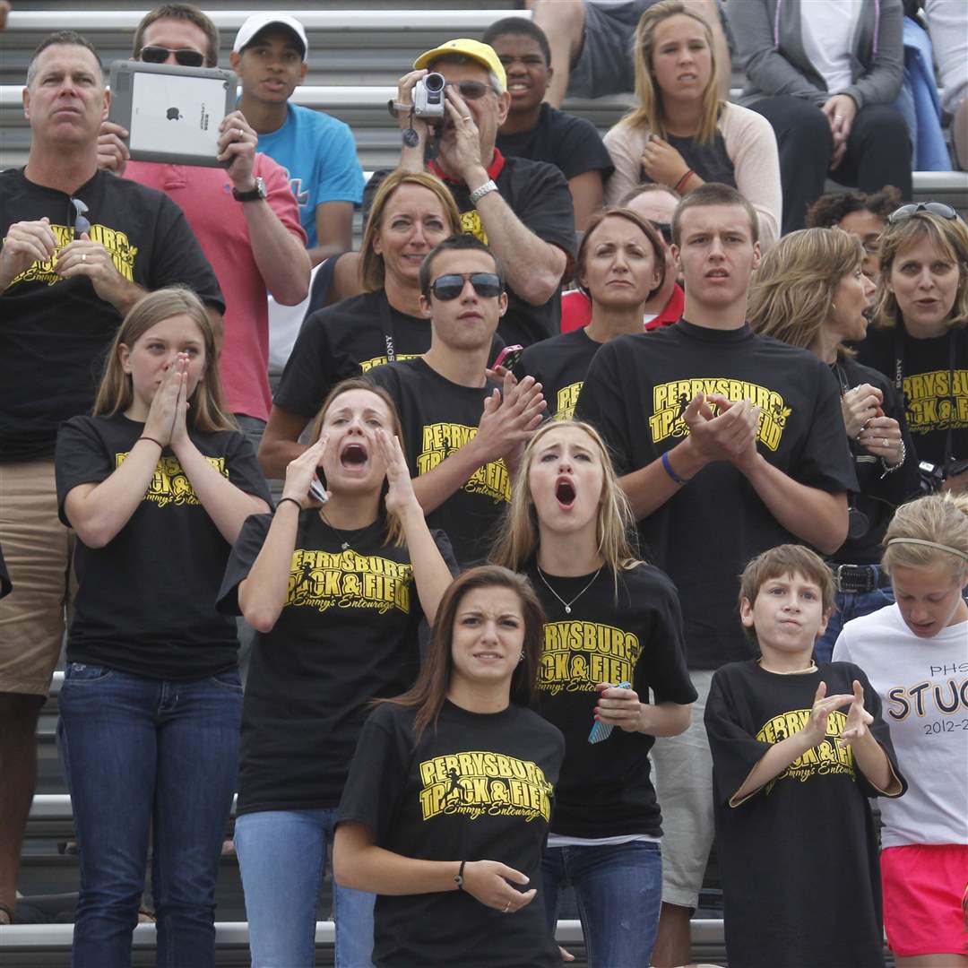 Perrysburg fans cheer on the girls 4x800 meter relay team.