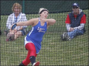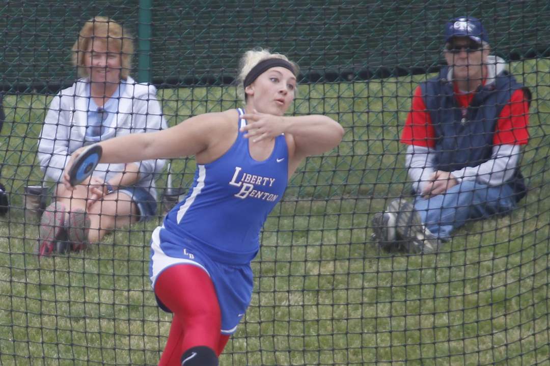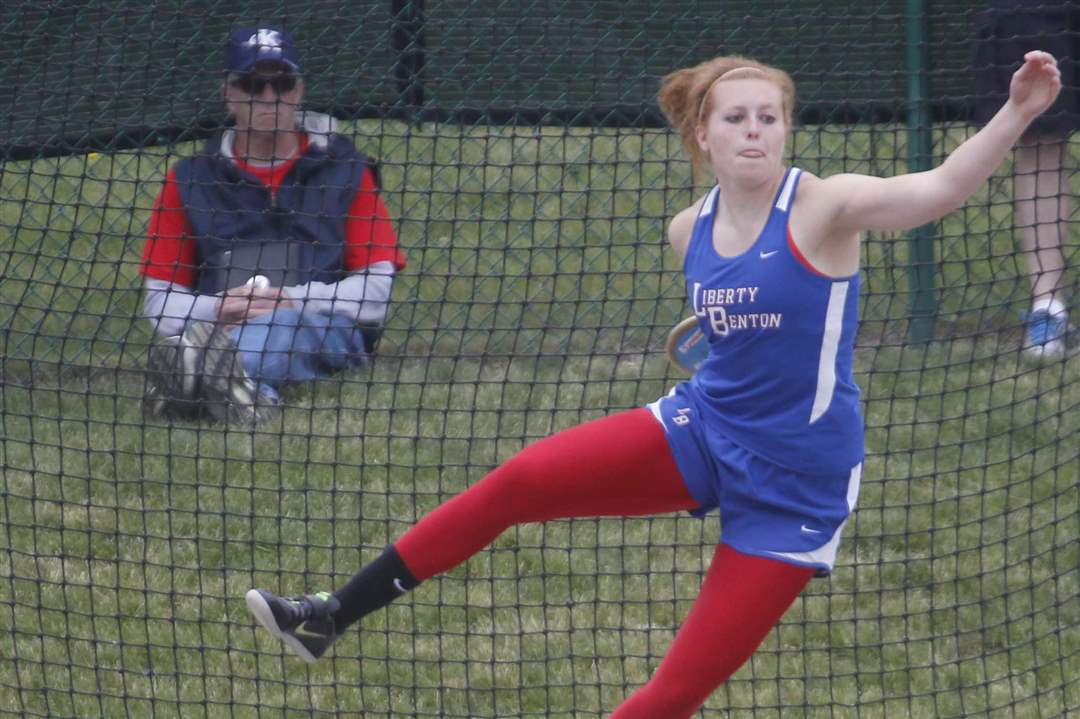 Liberty-Benton's Alex DeVincentis wins the discus throw.
