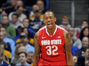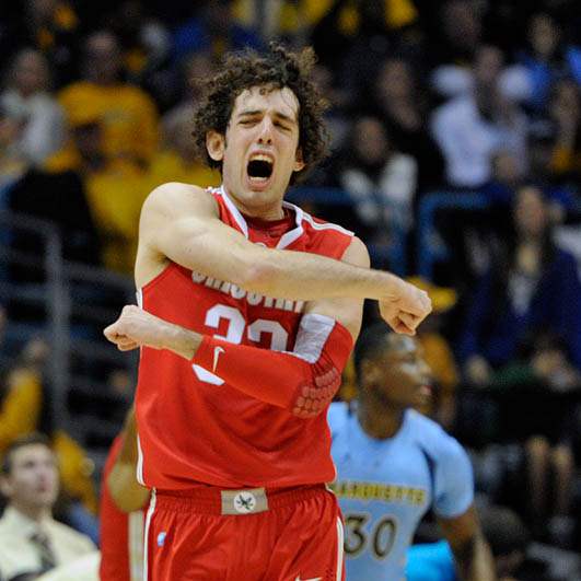 Ohio State's' Amedeo Della Valle celebrates an Ohio State basket against Marquette during the first half.
