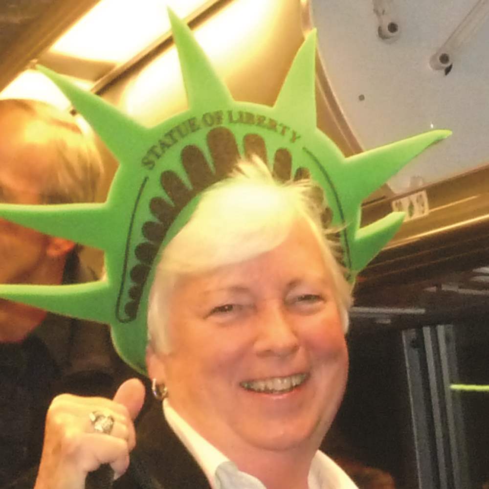 Sue Martin, a member of the Toledo delegation, takes time out for some fun and sightseeing in New York City.