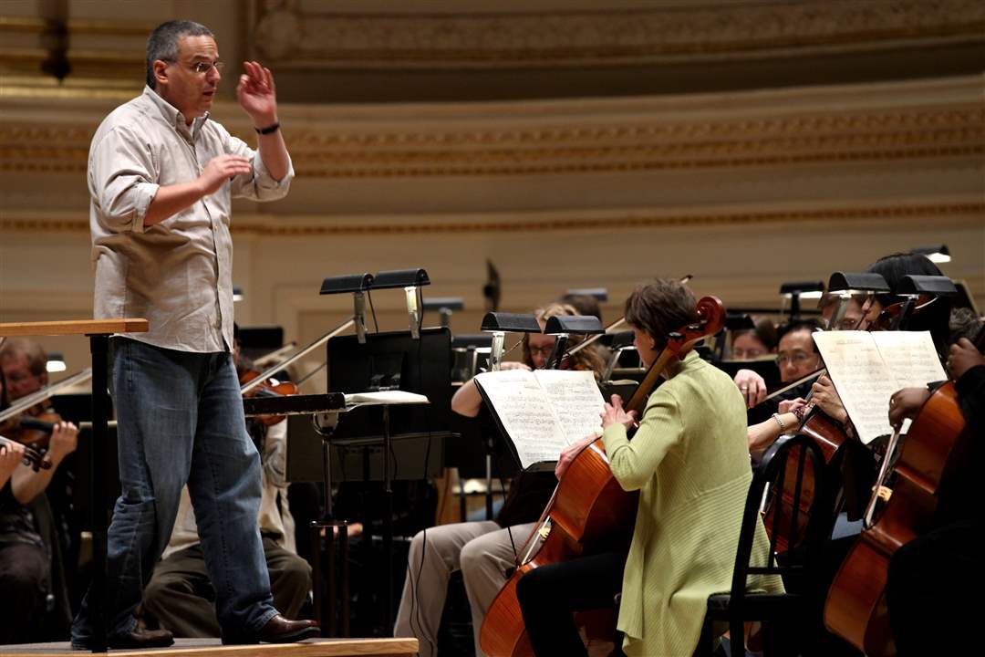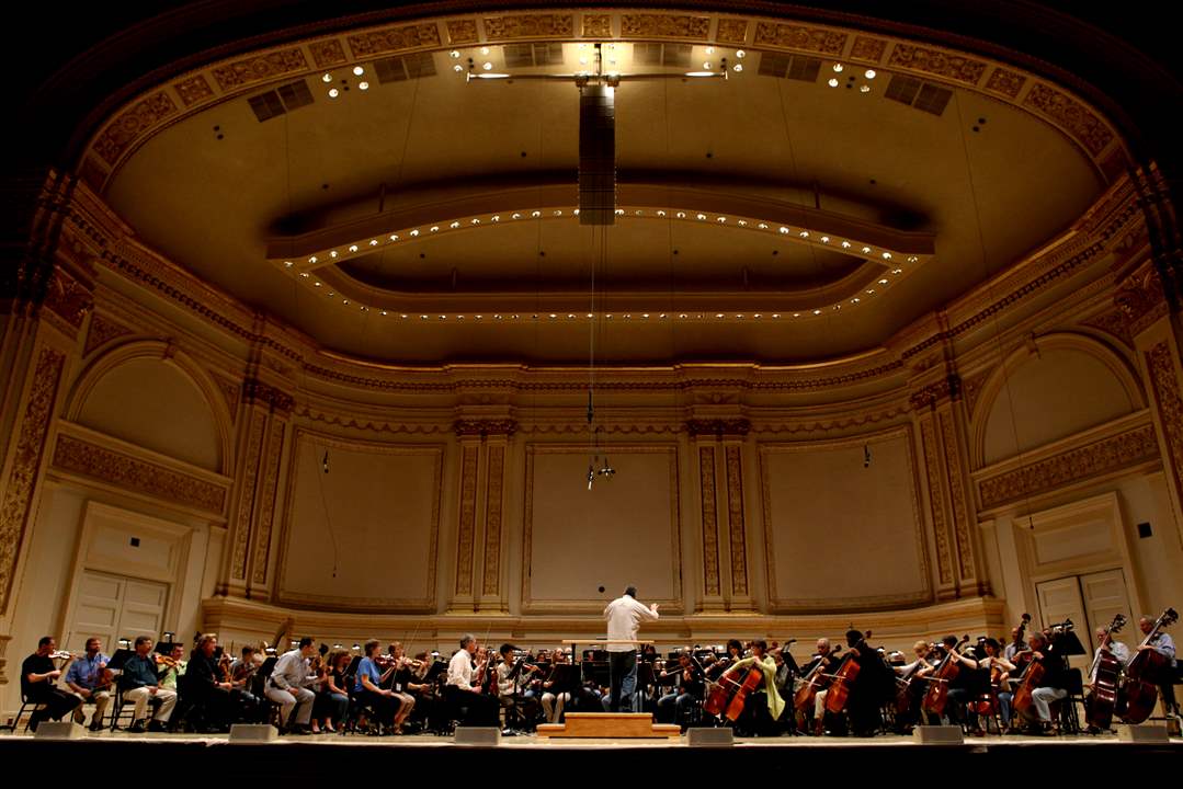 Principal conductor Stefan Sanderling puts the members of the Toledo Symphony through their paces during a rehearsal in Carnegie Hall.