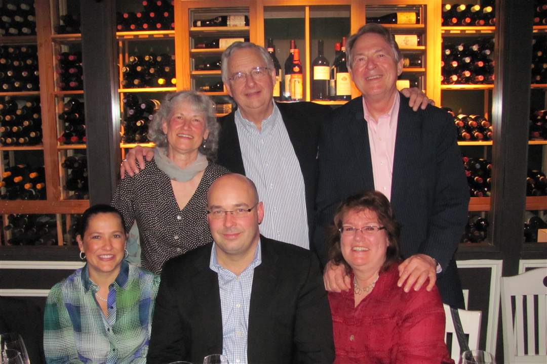 Seated from left, Kim and Doug Kearns and Mary Fedderke join, standing from left, Barbara and Joseph H. Zerbey IV and John Fedderke during a Friday celebration at L’Artusi, which was hosted by George Chapman.
