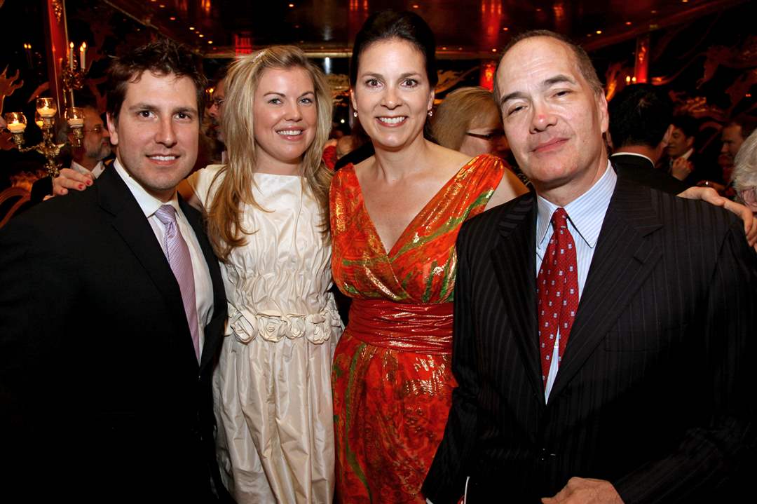 From left, Denning Rodriguez of New York, and luxury handbag designer Tyler Ellis mingle with Susan Block and Allan Block, chairman of Block Communications Inc., in the Russian Tea Room.