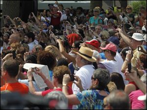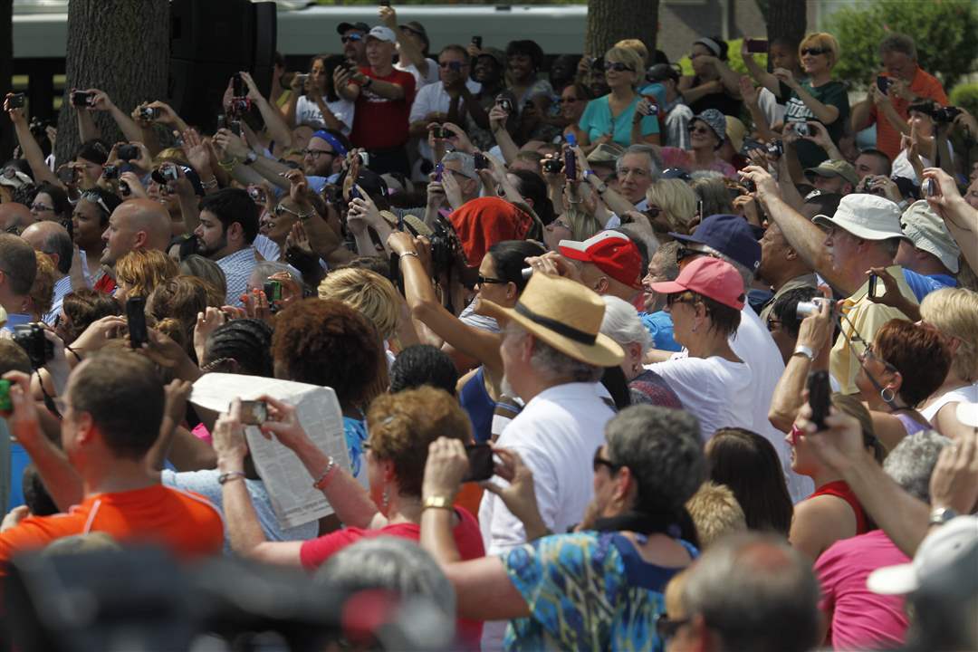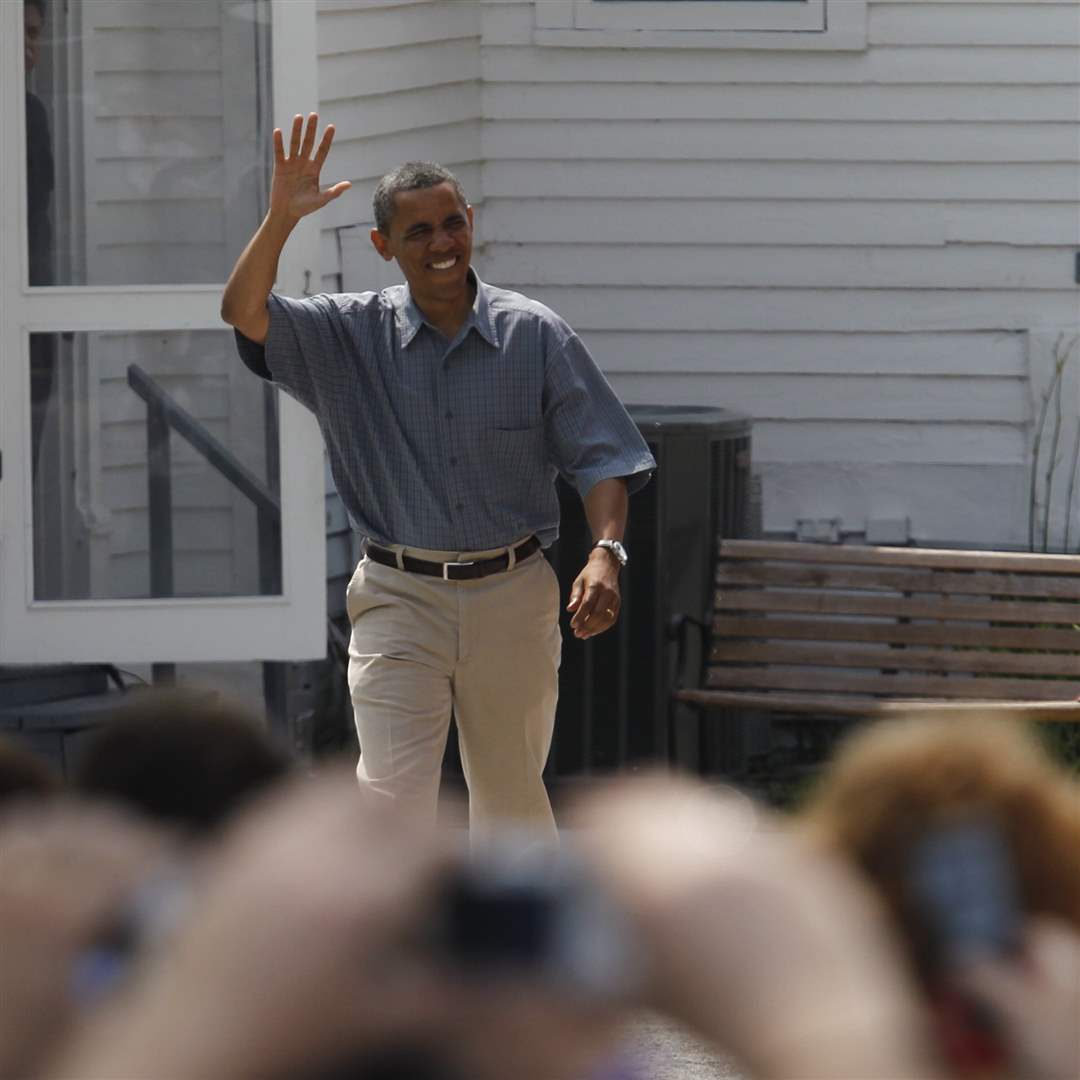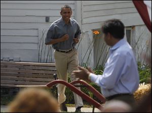 Obama waves before speaking in Maumee.