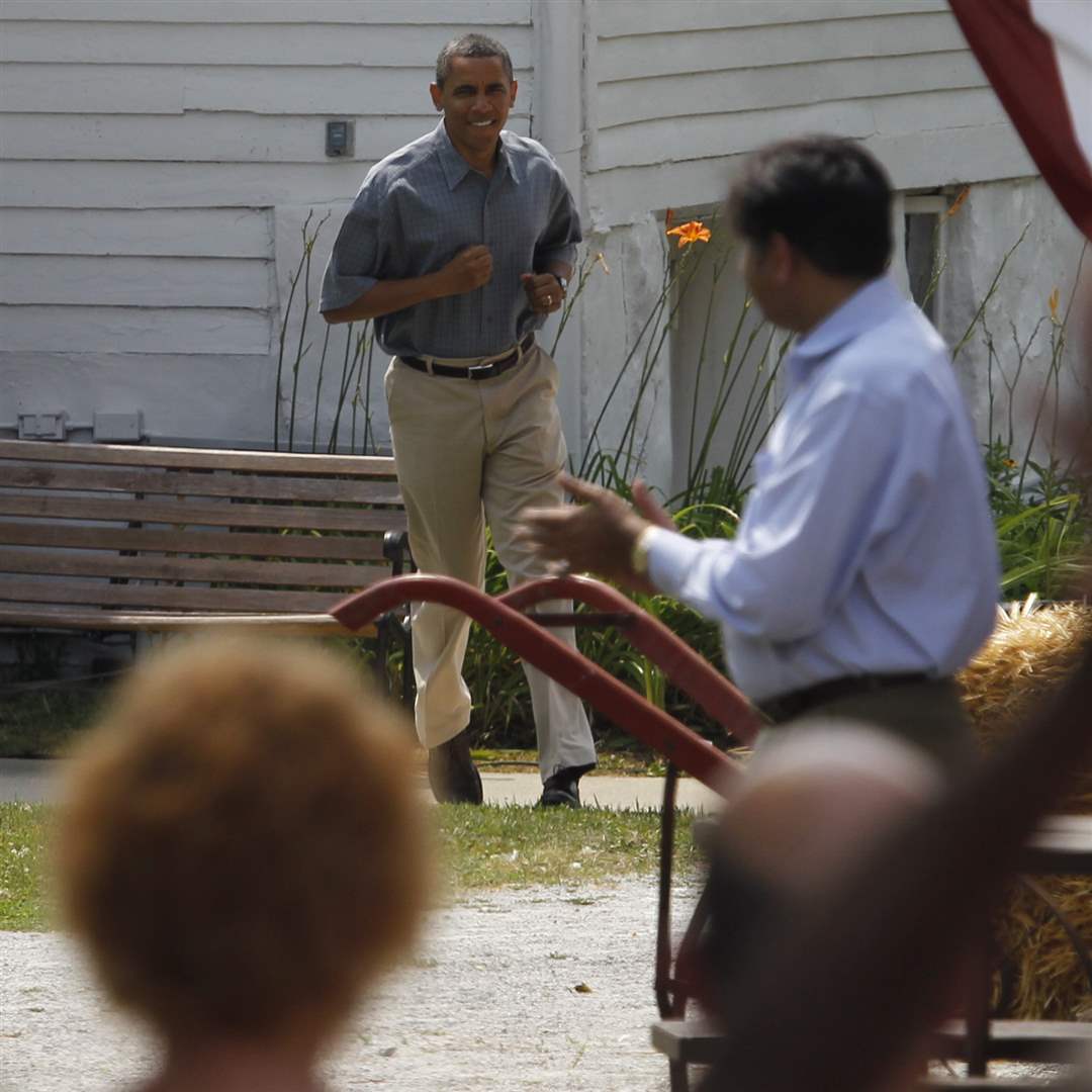 Obama begins a two-day bus trip through Ohio and Pennsylvania, beginning at Toledo Express Airport in Swanton.