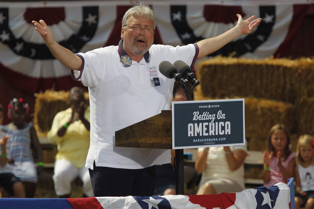 Maumee Mayor Tim Wagener speaks before President Barack Obama.