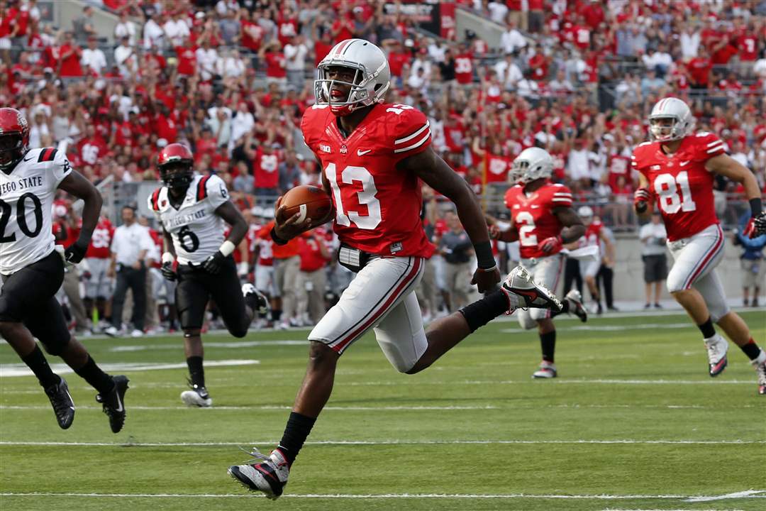 Ohio State QB Kenny Guiton (13) runs the ball against San Diego State during the first quarter.