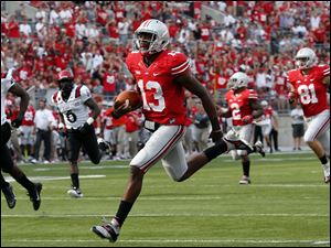 Ohio State QB Kenny Guiton (13) scores a touchdown against San Diego State during the second quarter.