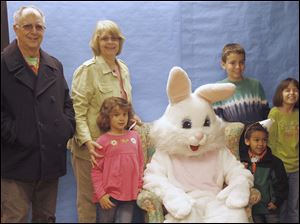 Gordon and Karen Hohler pose with their grandchildren during the annual egg hunt at Olander Park in Sylvania. Kids in back row from left are Sophia, Alex, and Grace Bowling of Indiana and Jackson Wolfe, 4, of Sylvania.
