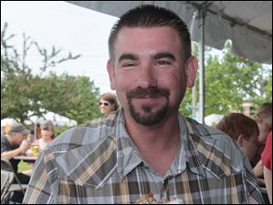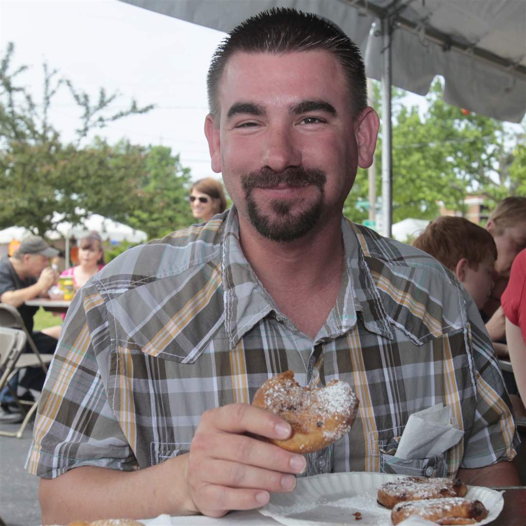 Rick Kelly, of Toledo, tries a deep-fried chocolate chip cookie at the food court area. It was "different", and "really good", but he likes the deep-fried Oreos more.