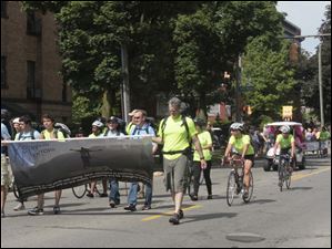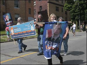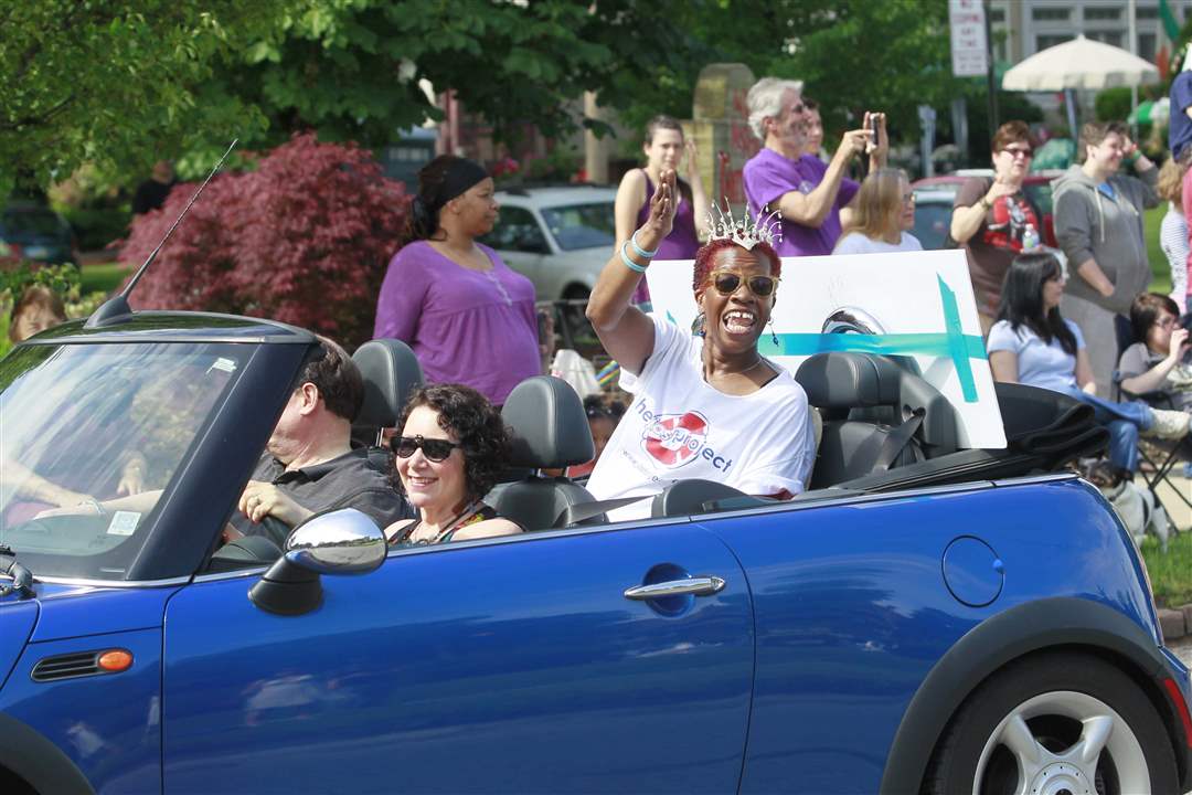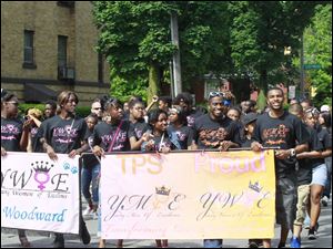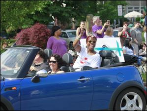 Toledo City Council President Paula Hicks-Hudson, center, waves to the crowd along Bancroft Street.