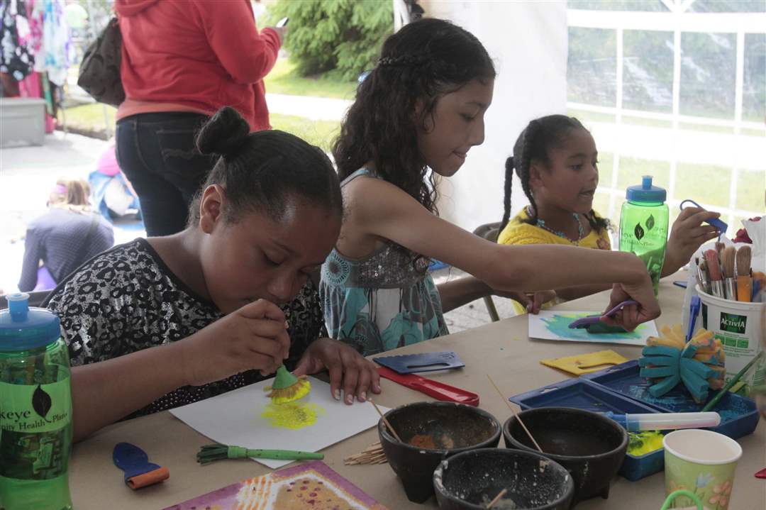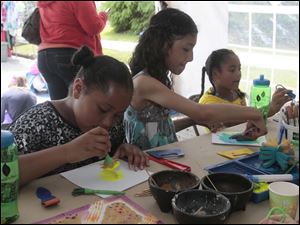 Takyah Atkins, 10, left, friend Maciela House, 10, and Takyah's sister Talyssa Atkins, 6, paint.