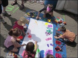 Greg Justus, of Maumee, working on an acrylic painting next to his tent in the art fair area of the festival.