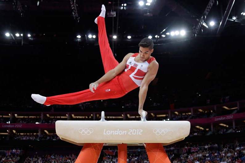 Britain's gymnast Louis Smith performs during the artistic gymnastics men's pommel horse finals.