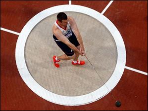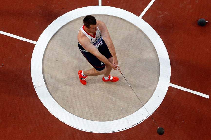 Britain's Alexander Smith competes in the men's hammer throw final.