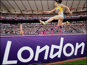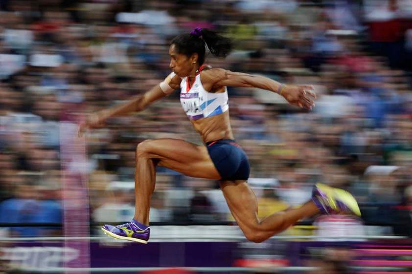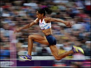 Britain's Yamile Aldama competes in the women's triple jump final during the athletics in the Olympic Stadium.