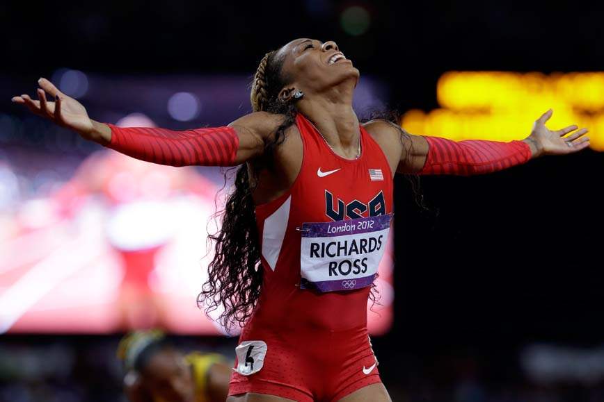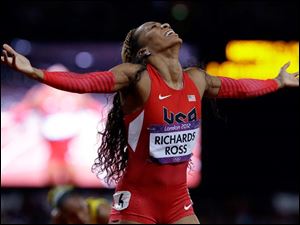 United States' Sanya Richards-Ross celebrates her win in the women's 400-meter final.