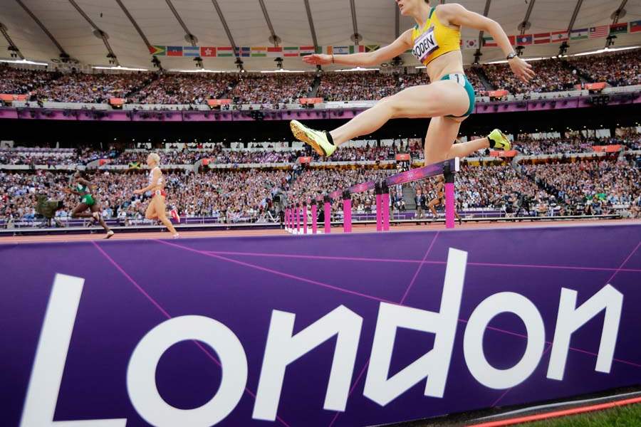 Australia's Lauren Boden competes in a women's 400-meter hurdles heat.